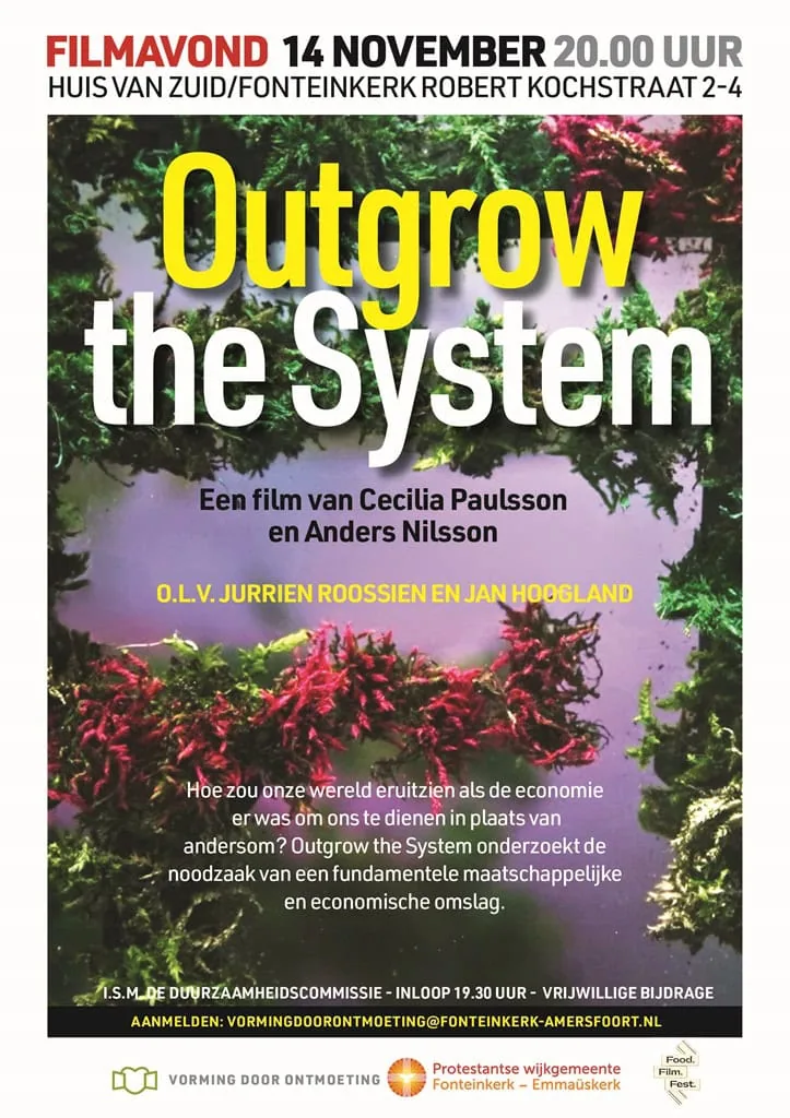 Het Food Film Festival is terug in Amersfoort, de Fonteinkerk doet daaraan mee door de film Outgrow the system te vertonen. Outgrow the system is een Zweedse film van Cecilia Paulsson en Anders Nilsson uit 2023 en duurt 58 minuten.